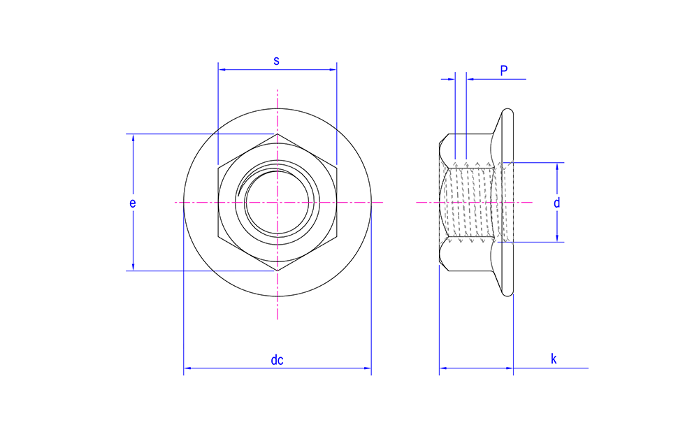 | Vantagens e recursos | Rosca hexagonal interna, com suporte de flange na parte externa para melhorar a superfície de contato Usado para fixação que requer uma grande superfície de contato |